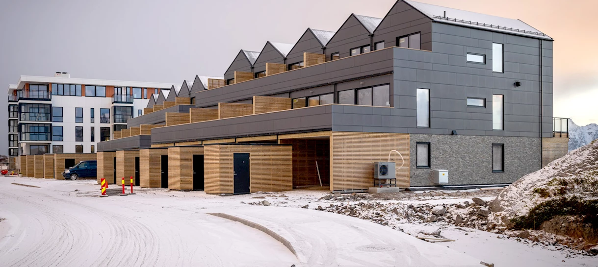 I majestetiske omgivelser ved innseilingen til Svolvær havn ligger Sjøsiden Boligpark med 57 boliger. Her har VB Nobel Rør og Roth levert fremtidsrettede varmeløsninger. Varmen blir nemlig gjenbrukt.